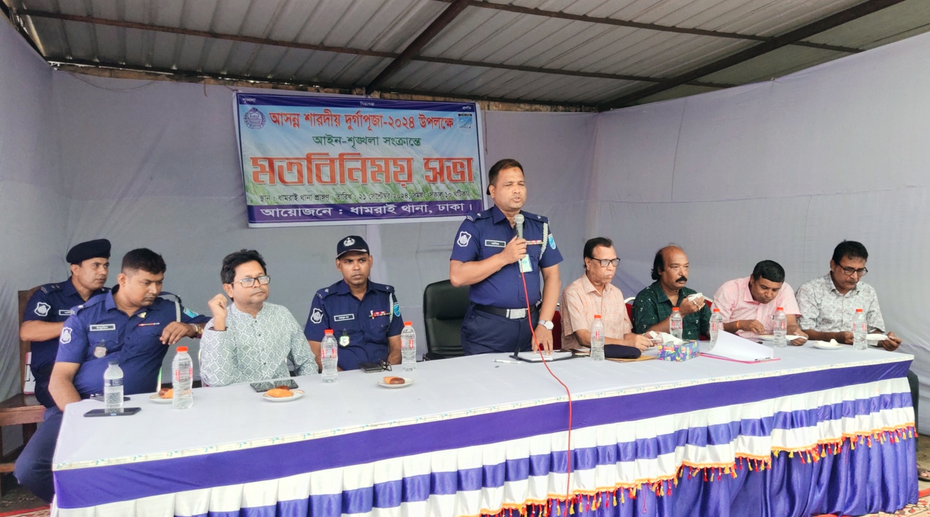 ধামরাই থানার পুলিশ পরিদর্শক (ওসি) মো. মনিরুল ইসলাম এর সভাপতিত্বে ধামরাই উপজেলার পূজা উদযাপন কমিটির নেতারা বিভিন্ন মতামত ও উৎসব উদযাপনের পরিকল্পনা তুলে ধরেন।