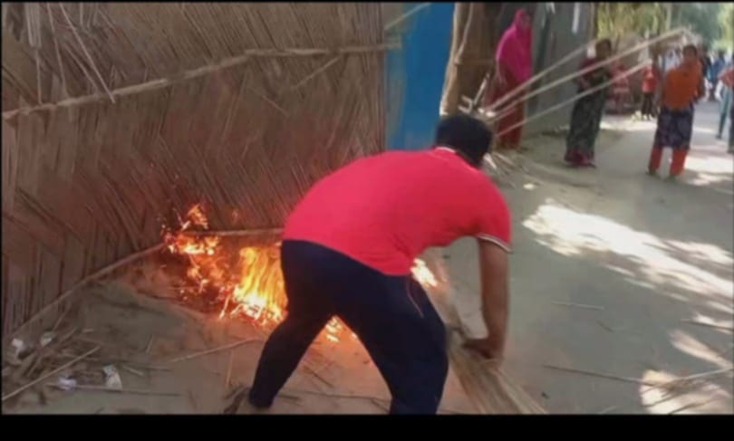 প্রত্যক্ষদর্শীরা জানান, জমি নিয়ে দীর্ঘদিন ধরে আকুব্বর শেখের সাথে প্রতিপক্ষের জাকের মাতুব্বরের বিরোধ চলছিল। এরই জেরে বুধবার দুপুরে আকুব্বরের বাড়িতে গিয়ে হামলা চালায় জাকের মাতুব্বর ও তার ছেলে রোমান মাতুব্বর। হামলার সময় রোমান কৃষক আকুব্বরের ঘরে আগুন ধরিয়ে দেয়। পরে স্থানীয়রা এসে আগুন নেভায়। যদিও এ আগুনে তেমন ক্ষতি হয়নি।