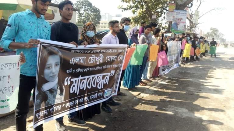 এলমা হত্যার বিচার দাবিতে ধামরাইয়ে মানববন্ধন