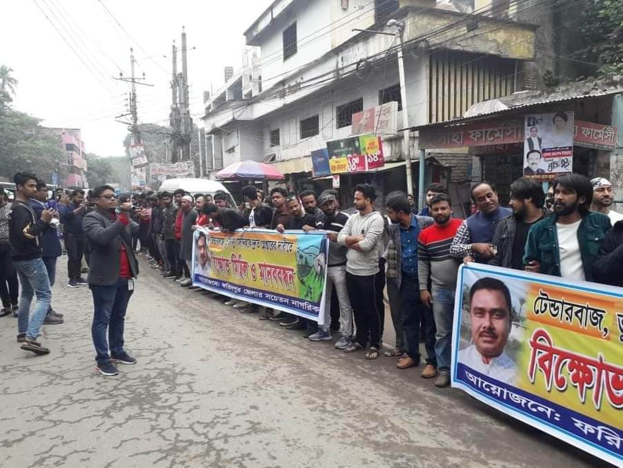 টেন্ডারবাজ ভূমিদস্যু সিদ্দিকুর রহমান কে গ্রেপ্তারের দাবিতে ফরিদপুর সচেতন নাগরিক সমাজের বিক্ষোভ মিছিল ও মানববন্ধন