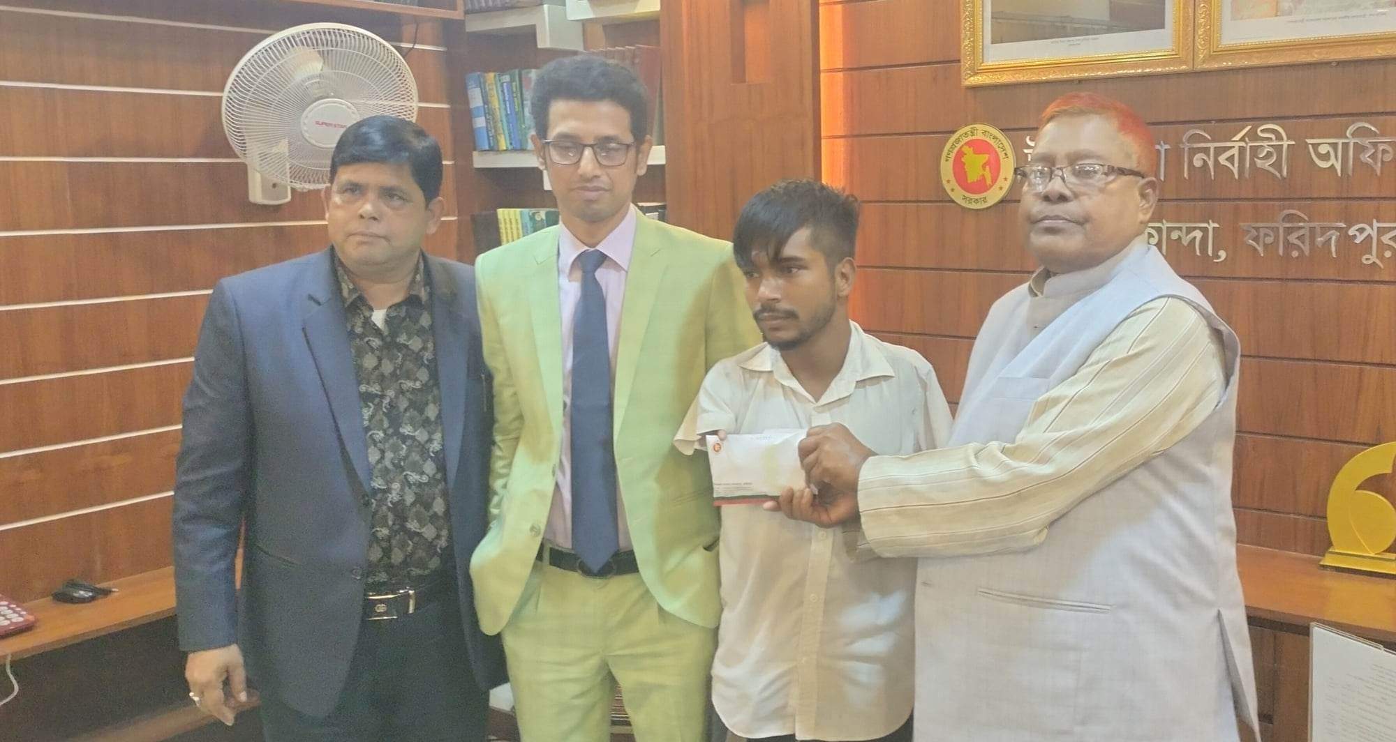 পা দিয়ে উত্তরপত্র লিখে এইচএসসি পাস করা ফরিদপুরের নগরকান্দার সেই হাতবিহীন জসিম মাতুব্বরের পড়ালেখার দায়িত্ব নিয়েছেন ইউএনও মো. মঈনুল হক। বুধবার ফলাফল প্রকাশের পর বৃহস্পতিবার (০৯ ফেব্রুয়ারি) দুপুরে প্রশাসনের পক্ষ থেকে জসিমকে নগদ ৬০ হাজার টাকা শিক্ষা সহায়তা দিয়ে তার পড়ালেখার দায়িত্ব নেওয়ার ঘোষনা দেন তিনি। জসিম এবার এইচএসসি পরীক্ষায় বানিজ্য শাখা থেকে জিপিএ ৪.২৯ পেয়ে পাস করেন। তার এ সাফল্যে পরিবারের মধ্যে বইছে আনন্দ জোয়ার।