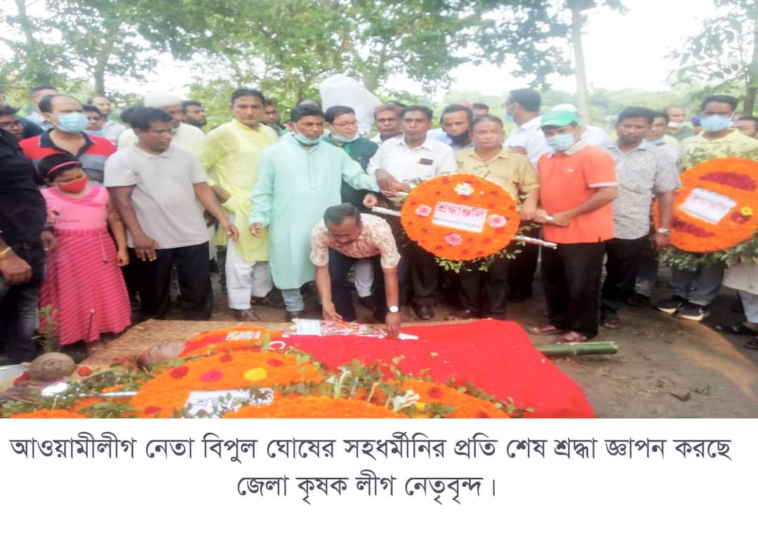 তার মৃত্যুতে বাংলাদেশ আওয়ামী লীগ জেলা শাখা, উপজেলা শাখা ও অঙ্গসংগঠনের নেতৃবৃন্দ সহ জেলার বিশিষ্ট ব্যক্তিবর্গ শোকসন্তপ্ত পরিবারের প্রতি সমবেদনা জ্ঞাপন করেন। বিপুল ঘোষ দেশের বাইরে থাকায় তার স্ত্রী স্মৃতিকণা ঘোষ এর শেষকৃত্য ফরিদপুর সদর উপজেলার মাচ্চর ইউনিয়নের চন্ডিপুর নিজ বাড়িতে ৪ঠা অক্টোবর সম্পন্ন হয়। সোমবার সেখানে হাজারো মানুষের শেষ ফুলেল শ্রদ্ধায় সমাহিত হন।