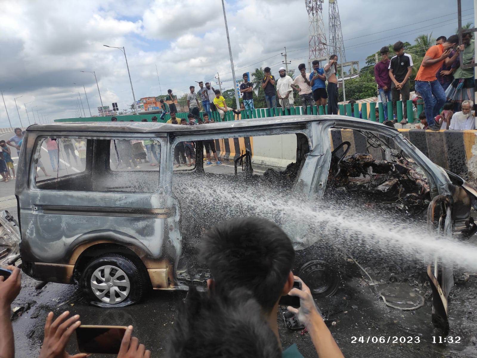 তিনি বলেন, একটি দ্রুতগামী অ্যাম্বুলেন্স নিয়ন্ত্রণ হারিয়ে ফ্লাইওভারের রেলিংয়ে ধাক্কা দিলে মুহূর্তে আগুন ধরে যায় মাইক্রোবাসটিতে। এতে অগ্নিদগ্ধ হয়ে মাইক্রোবাসে থাকা ৭ জন যাত্রী ঘটনাস্থলে নিহত হয়েছেন। তবে, নিহতের সংখ্যা আরও বাড়তে পারে বলে ধারণা করছি। এ ঘটনায় বেশ কয়েকজন আহত হয়েছেন। তাদের উদ্ধার করে বিভিন্ন হাসপাতালে ভর্তি করা হয়েছে।