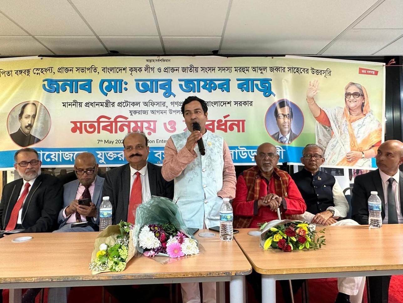 নাজমুল হোসেন বিশেষ প্রতিনিধি: মৌলভীবাজার জেলার কুলাউড়া উপজেলার কৃতি সন্তান, কুলাউড়ার মাটি ও মানুষের প্রিয় নেতা সাবেক সংসদ সদস্য মরহুম আব্দুল জব্বার সাহেবের সুযোগ্য পুত্র ও গনপ্রজাতন্ত্রী বাংলাদেশ সরকারের মাননীয় প্রধানমন্ত্রী জননেত্রী শেখ হাসিনার প্রটোকল অফিসার আবু জাফর রাজু” প্রধান মন্ত্রীর সফরসঙ্গী হিসাবে যুক্তরাজ্য আগমন উপলক্ষে কুলাউড়াবাসী ইউ,কে এর উদ্যোগে রবিবার সন্ধ্যা এক মতবিনিময় সভা ও সম্বর্ধনা অনুষ্ঠিত হয়।