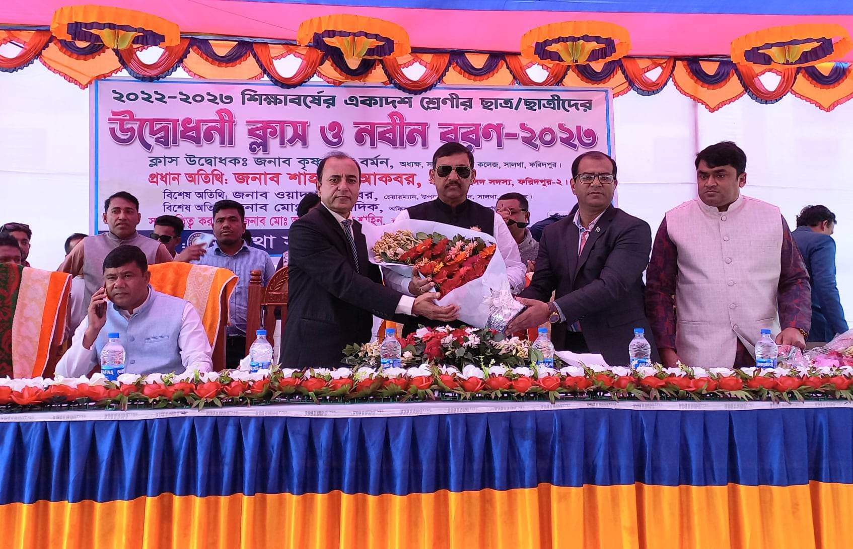 ফরিদপুরের সালথা সরকারি কলেজের ২০২২-২৩ইং শিক্ষা বর্ষের একাদশ শ্রেণীর ছাত্র-ছাত্রীদের উদ্বোধনী ক্লাস ও নবীন বরণ অনুষ্ঠিত হয়েছে। বুধবার বেলা ১১টায় সালথা সরকারি কলেজের আয়োজনে উক্ত কলেজ মাঠ প্রাঙ্গণে এই নবীন বরণের আয়োজন করা হয়। এসময় একাদশ শ্রেণীর শিক্ষার্থীদের কে ফুল দিয়ে শুভেচ্ছা জানানো হয়। উক্ত উনুষ্ঠানের উদ্ভোধন করেন অত্র কলেজের অধ্যক্ষ কৃষ্ণ চন্দ্র বর্মন।