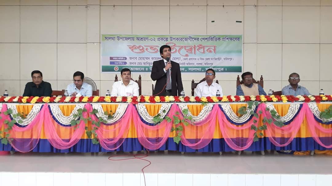 ফরিদপুরের সালথায় আশ্রয়ণ-২ প্রকল্পে উপকারভোগীদের পেশাভিত্তিক প্রশিক্ষণের শুভ উদ্বোধন করা হয়েছে। উপজেলা প্রশাসন সালথা এর আয়োজনে সোমবার (১৮ নভেম্বর) বেলা ১১টার জেলা মাল্টিপারপাস হল রুমে এই প্রশিক্ষণের উদ্বোধন করেন ফরিদপুরের জেলা প্রশাসক ও বিজ্ঞ ম্যাজিস্ট্রেট মোহাম্মদ কামরুল হাসান মোল্যা। শুভ উদ্বোধন শেষে আশ্রয়ণ প্রকল্পের উপকারভোগীদের সুখ দুঃখের কথা শোনেন। জেলা প্রশাসক ও বিজ্ঞ ম্যাজিস্ট্রেট মোহাম্মদ কামরুল হাসান মোল্যা। এরপর ভূমি অফিস ও বিভিন্ন শিক্ষা প্রতিষ্ঠান পরিদর্শন করেন।