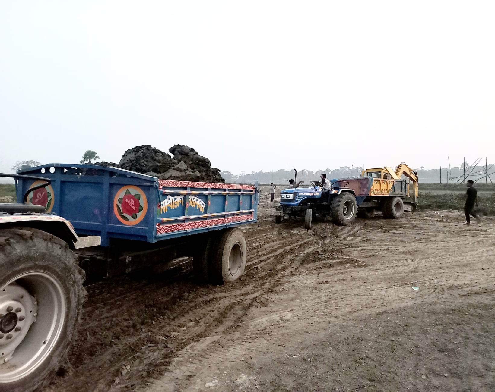 ভেকু ও ট্রলির ড্রাইভাররা জানান, জমির মালিক খলিশপট্টি গ্রামের আয়নাল হকের ছেলে শাখাওয়াত হক। তিনি এসব মাটি ইটভাটায় ও গৃস্থদের কাছে বিক্রি করছেন। আমরা শুধু মাটি কেটে গন্তব্যে পৌছে দেওয়ার জন্য চুক্তিবদ্ধ হয়েছি। নাম প্রকাশ না করার শর্তে মাটির তোলার কাজে নিয়জিত একজন বলেন, মাটি কাটা শুরুর প্রথম দিন মোটরসাইকেলযোগে ২-৩ জন লোক এসে জমির মালিকের কাছ থেকে টাকা নিয়ে যায়। এই টাকা দিয়ে তারা নাকি ভূমি অফিসের কর্মকর্তা-কর্মচারীদের ম্যানেজ করবে বলে জানায়। এরপর থেকে গত চার দিন ধরে আমরা নিরাপদে মাটি কাটছি। কেউ আমাদের বাধা দিচ্ছে না।