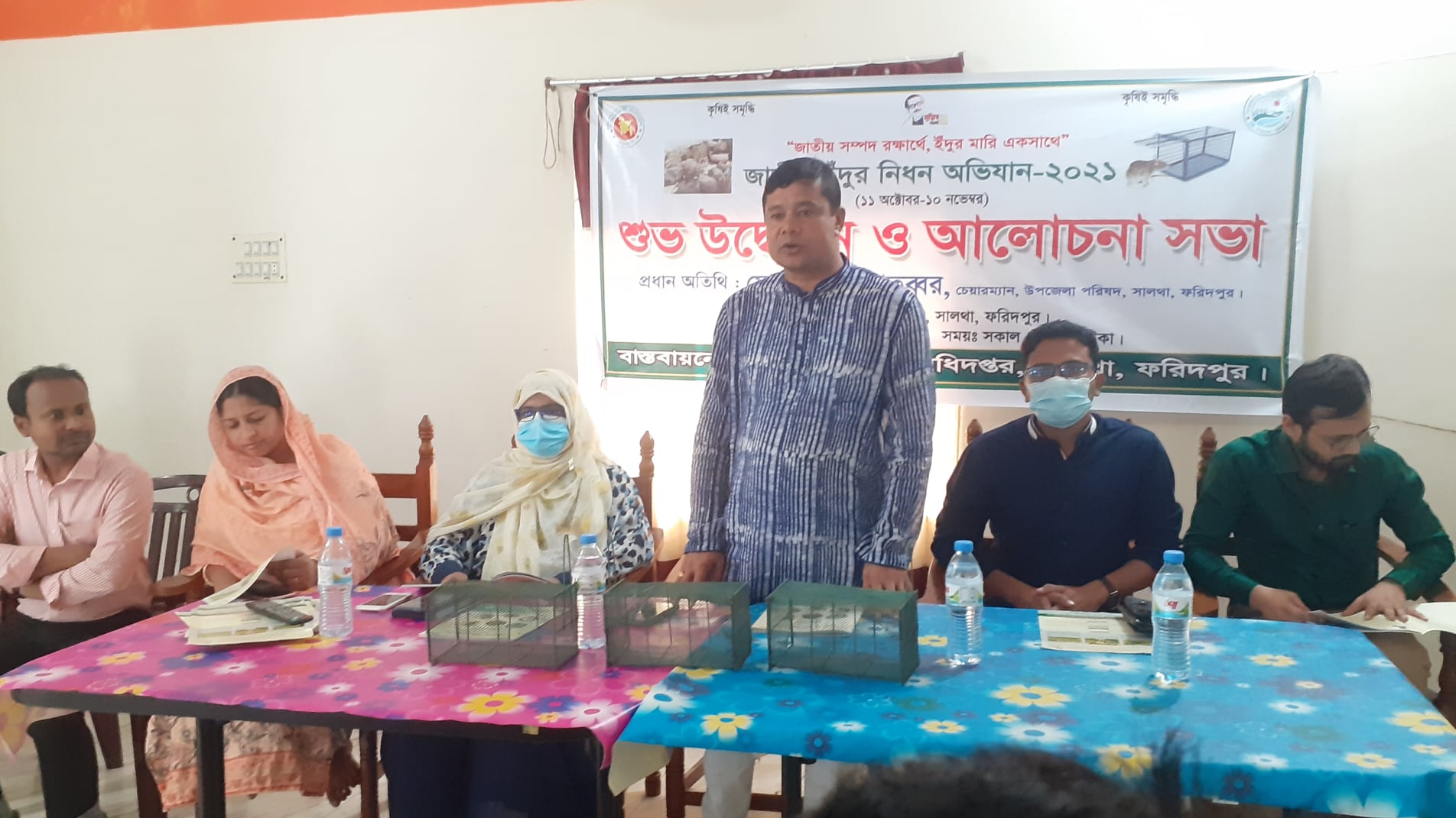 জাতীয় সম্পদ রক্ষার্থে, ইঁদুর মারি একসাথে। এই স্লোগানকে সামনে রেখে ফরিদপুরের সালথায় জাতীয় ইঁদুর নিধন অভিযান ২০২১শের শুভ উদ্ভোধন ও আলোচনা সভা অনুষ্ঠিত হয়েছে।