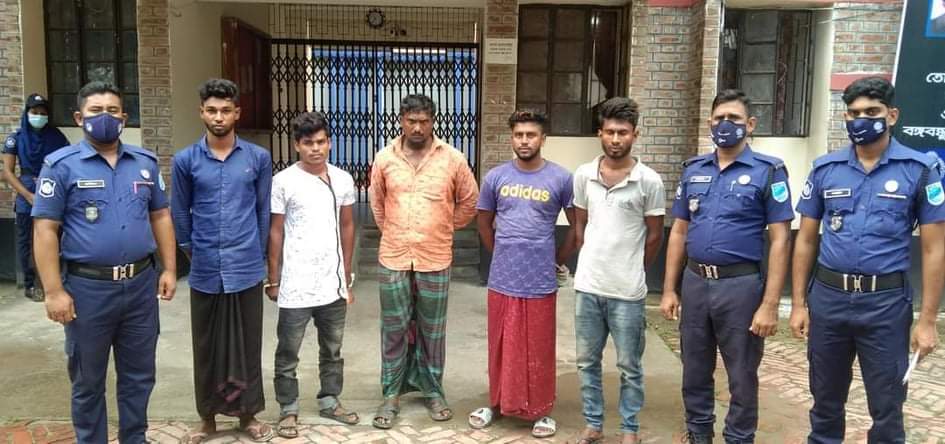 গ্রেপ্তারকৃতরা হলেন, উপজেলার রামকান্তপুর ইউনিয়নের মাঠ সালথা গ্রামের চুন্নু শেখের ছেলে হোসাইন শেখ (২০), মৃত জয়নাল মোল্যার ছেলে হোসেন মোল্যা (২০), মৃত মান্নান মোল্যার ছেলে রেজাউল মোল্যা(৩৫), রশিদ মোল্যার ছেলে জাকির মোল্যা (২১) ও সেমেল ফকিরের ছেলে রবিউল ফকির (২১)।